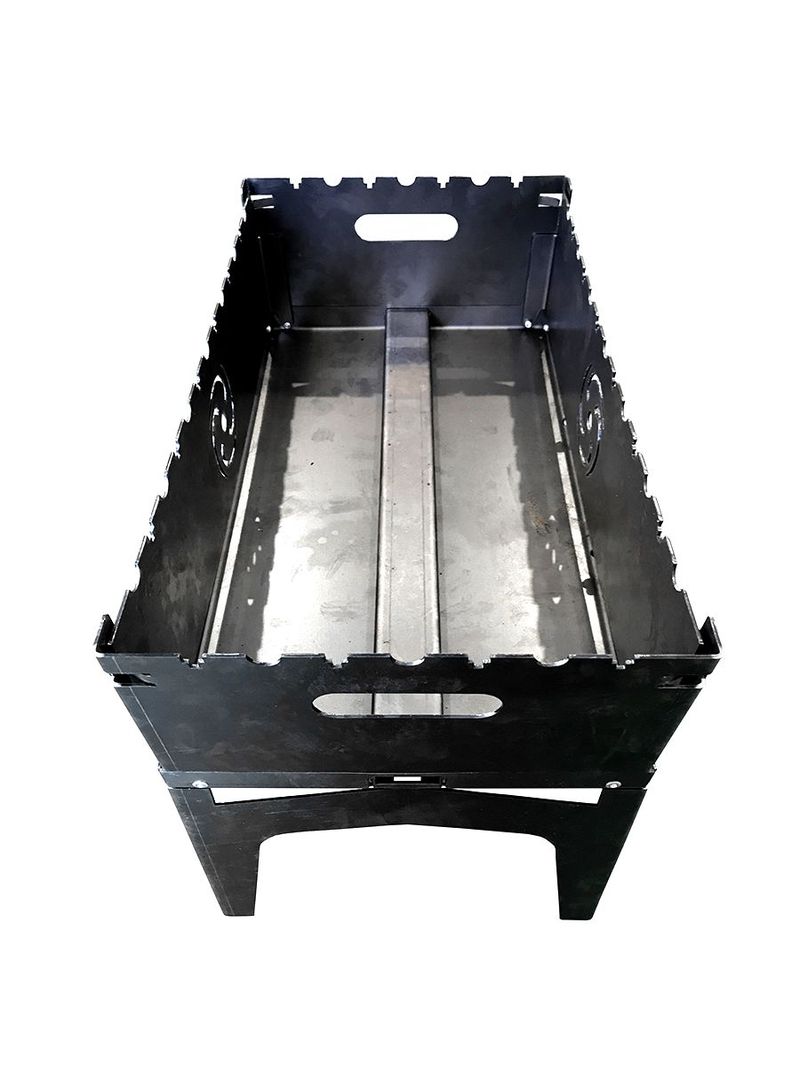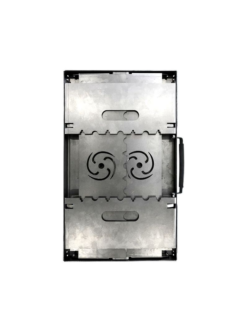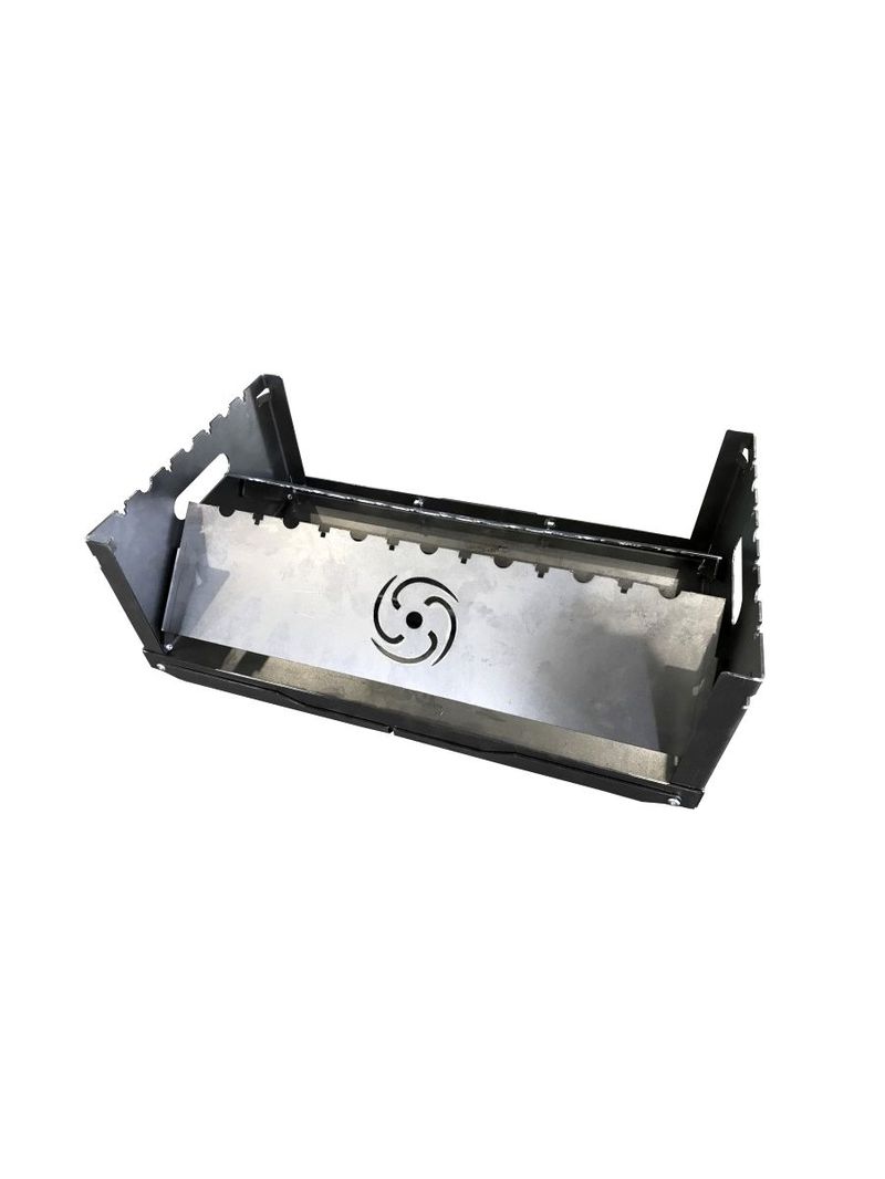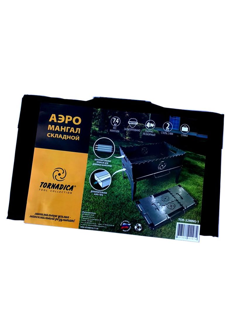 Аэро мангал Tornadica имеет размер - 49 х 29 см. В нижней части с торца встроена аэротруба по всей длине мангала. Внутри она имеет перфорацию, что обеспечивает беспрерывный поток кислорода под напором во внутрь мангала. Кислород стимулирует розжиг и поддерживает интенсивность тления угля, древесины на мангале. Качественный складной мангал из 2 мм стали удобной конструкции. В комплекте - чехол из прочного брезентового материала. Мангал благодаря Аэро- тоннелю гарантирует быстрый, легкий розжиг и равномерное горение, а также ускоренное остывание после использования, кроме того, равномерное прожаривание при приготовлении гриль-меню. Преимуществом также является экономия на отсутствии необходимости использования дополнительных аксессуаров для раздува очага. Возможно использовать как длинные, так и короткие шампура. Изделие качественное, уникальное, запатентованное, долгое время можно использовать без деформации.