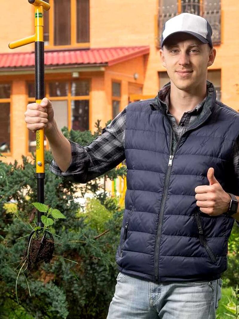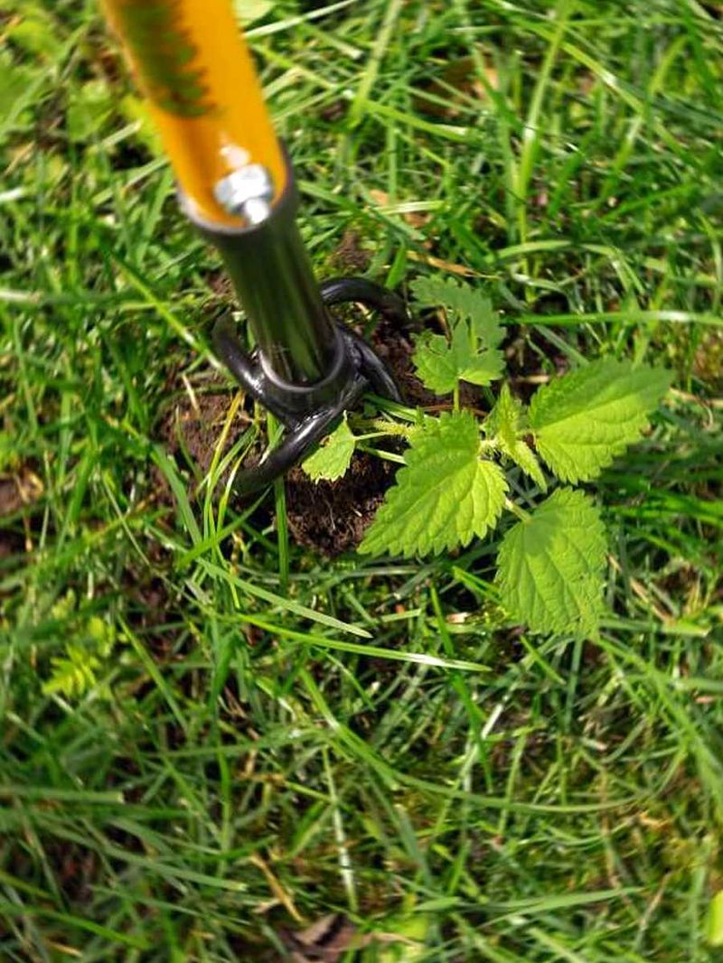 Извлекатель сорняков Tornadica состоит из рабочей части в виде 4 кованых спиральных зубьев, которые изготовлены вручную из инструментальной стали. Максимальная длина инструмента - 95 см, диаметр рабочей части - 9 см. Не требуется совершать наклон, благодаря рукоятке на ручке с возможностю регулировки отсутствует нагрузка на спину. Преимущество - удаляет одуванчики полностью.