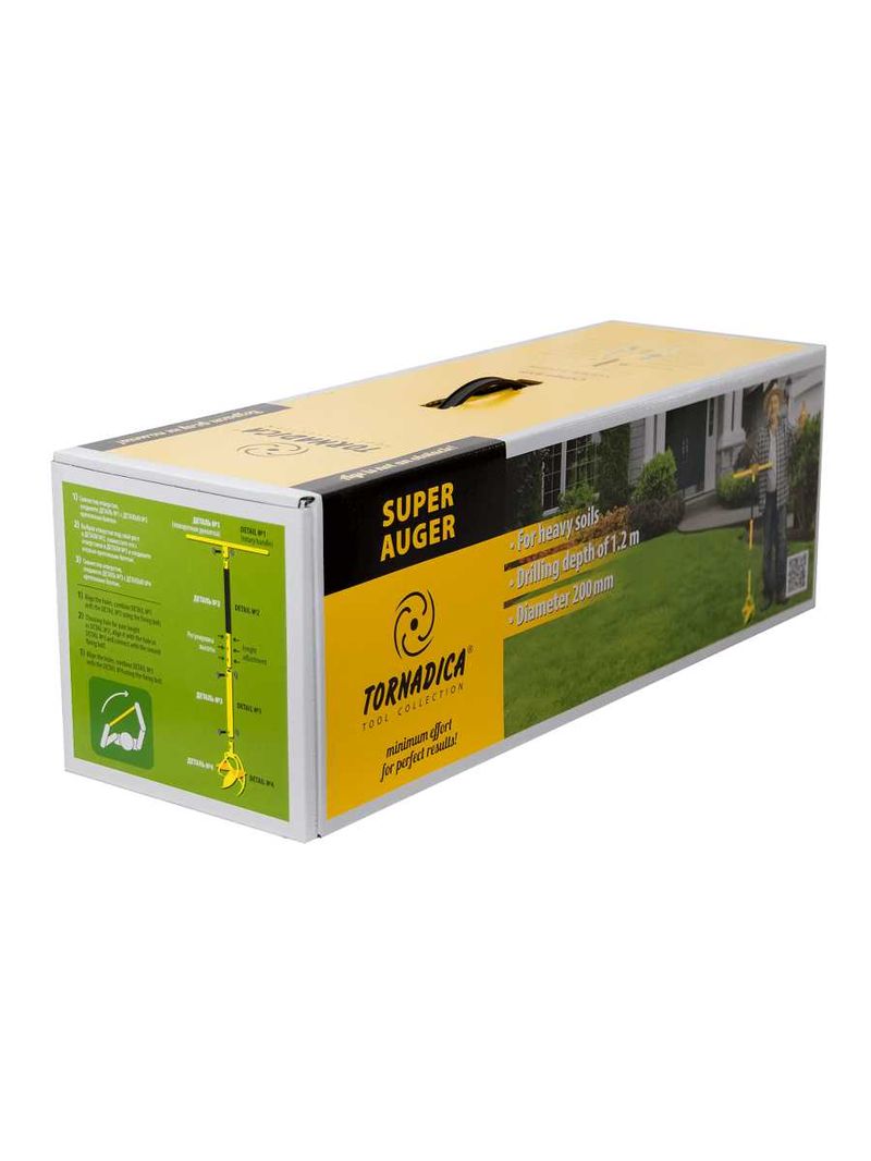 Садовый бур Торнадика создан путьем слияние ручного культватора Торнадика и стандартного пластичного земляного бура.Культиватор взят за основу, благодаря чему появился новый уникальный в своем роде инструмент. Увеличилась скорость бурения. Направляющие зубья позволяют буру "Торнадика" легко проникать в любую почву, даже забитую строительным мусором, камнями, гравием.Складная конструкция инструмента делает его удобным для хранения и транспортировки. Садовый бур состоит из рабочей части и двух удлинителей рукоятки. Рабочая часть представляет собой кованые термообработанные спиральные зубья, изготовленные вручную из конституционной стали. Зубья рабочей части обладают высокой прочностью. Диаметр бурения рабочей части составляет 20 см. Удлинители изготовлены из легкой стальной трубы, регулируемая глубина бурения 1,20м. Таким образом рукоятка изготовлена из стальной трубы.